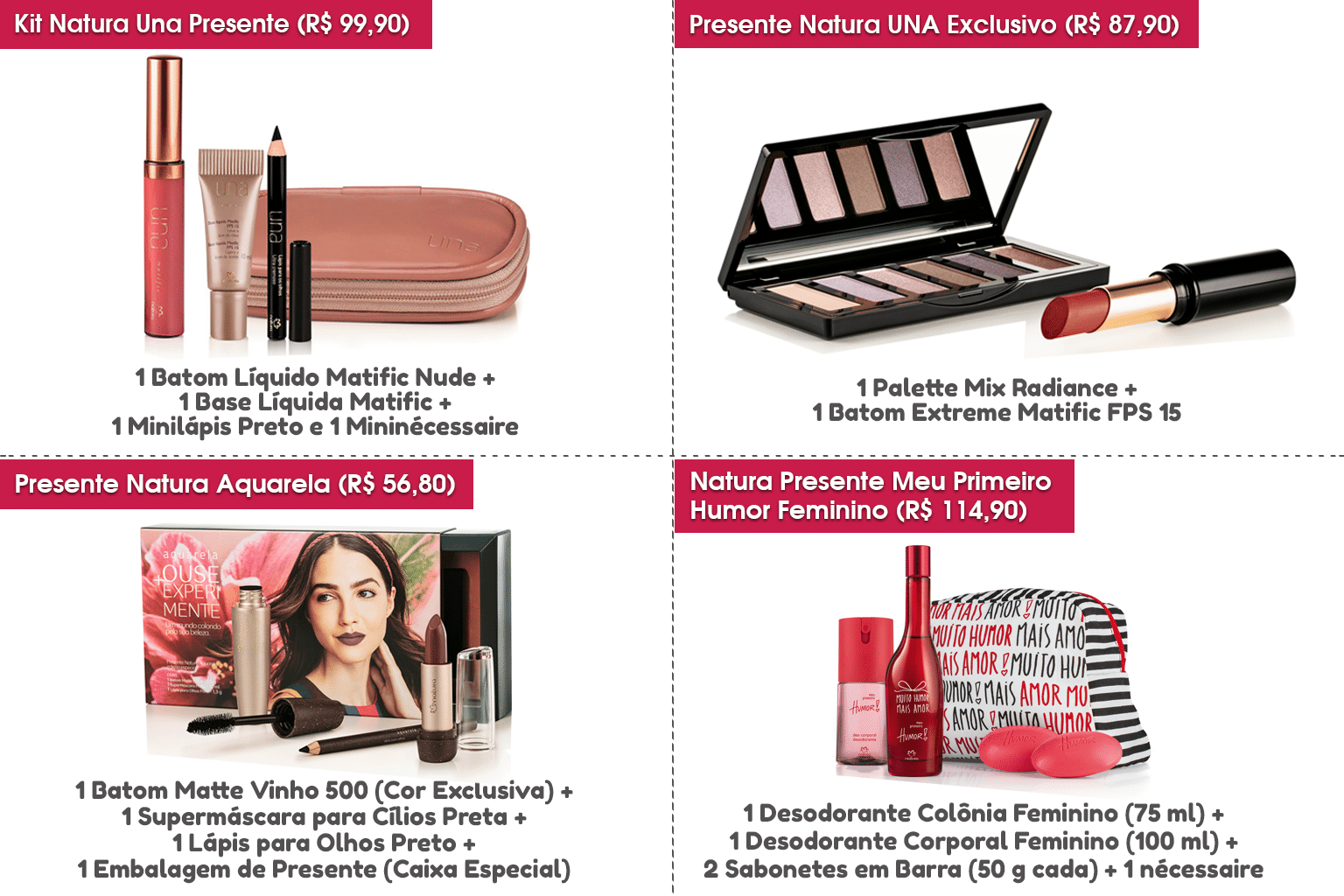 Eu escolhi apenas alguns dos kits femininos, mas tem muitas ideias boas de presentes para homens também. Entre no site ou visite uma das lojas – com sorte, talvez sua consultora também tenha algo a pronta entrega!
